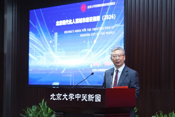 在《北京现代化人民城市建设指数(2026)》发布仪式上,首发院院长、北京市人民政府参事李国平教授介绍了人民城市建设指数的主要结论,从创新、宜居、美丽、韧性、文明、智慧、空间体系7个方面构建指标体系,对2014—2024年北京现代化人民城市建设进程进行了测度分析。从2014年到2024年,北京市现代化人民城市建设指数从100增长到939.35,年均增速为25.11%,北京市现代化人民城市建设成效显著。
