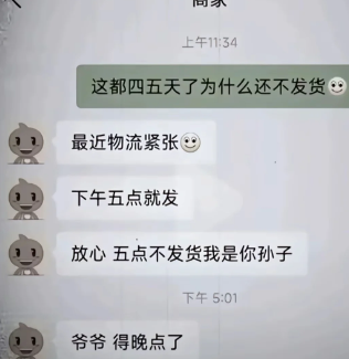 放心,五点不发货我是你孙子 爷爷 得晚点了