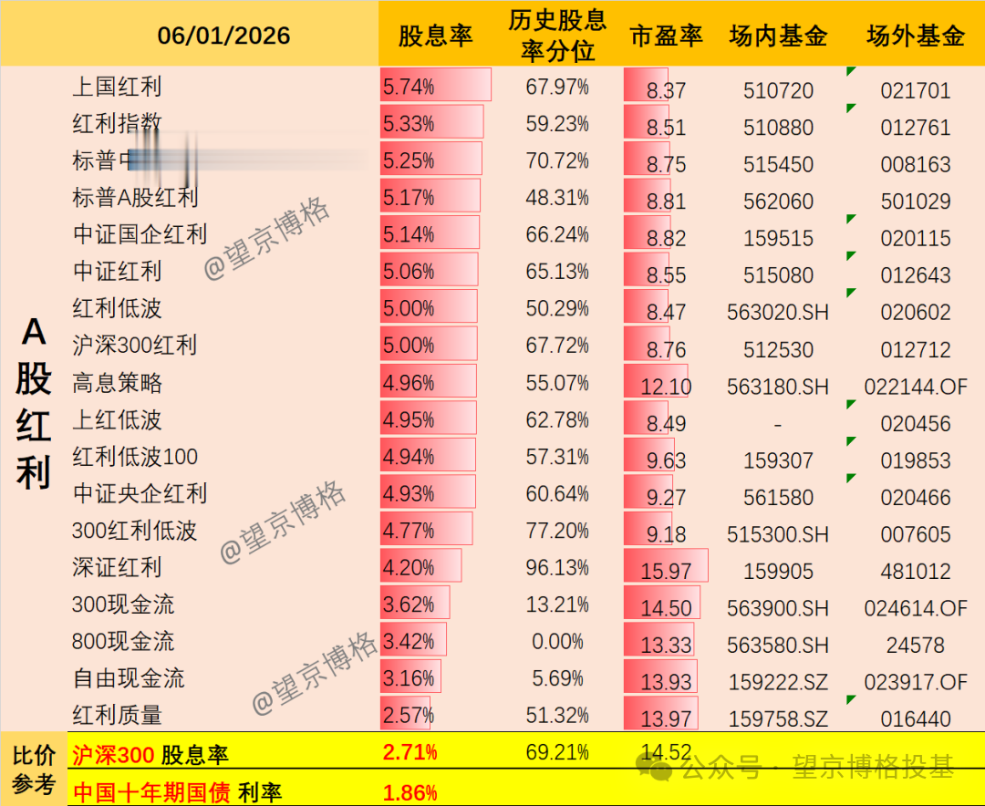 (下文有多个股息率表格)