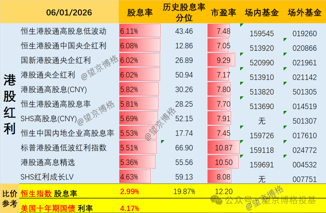 港股红利指数股息率在5.8%左右,最高6.11%;