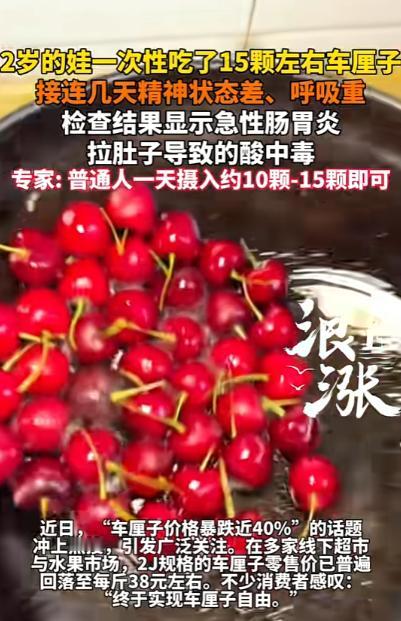 “悲剧还是发生了!”近日,浙江杭州,一小孩一次性吃了15颗左右车厘子,在接下来几天,精神状态都特别差,不仅呕吐还开始拉肚子!送医检查后确诊为急性肠胃炎,并且因为拉肚子导致酸中毒,就连医生刚开始也不相信罪魁祸首是车厘子! 事情发生在上周五下午,当时小明正在客厅看动画片,桌上摆着一盒新鲜的车厘子,红彤彤、亮晶晶的果实非常诱人。 孩子平时就爱吃水果,这次更是忍不住一口接一口,很快就把整整15颗吃了下去。 家长当时看到,也只是笑着说:“吃完就不要吃了,肚子会胀。”谁料,这一句轻描淡写的提醒,没能阻止接下来发生的意外。 到了晚上,小明开始表现出异常——他突然大喊肚子痛,还出现了轻微的呕吐。家长起初以为是普通的消化不良,给他喂了一点温水和米汤,但情况并没有好转。 到了第二天,孩子不仅呕吐频繁,还开始腹泻,精神状态非常差,眼神无光,整个人显得极度虚弱。见状,家长立刻带孩子去医院就诊。 在医院,医生对孩子进行了详细检查。体温正常,但血压略低,血液检查显示孩子出现了轻度脱水和电解质紊乱。 更令人担忧的是,连续腹泻导致血液呈现轻度酸中毒状态。医生面色凝重地告诉家长:“情况不能掉以轻心,孩子需要静脉补液和监测。” 当家长提起孩子前一天吃了大量车厘子时,医生一开始也有些难以置信。 毕竟车厘子是大家都熟知的水果,通常被认为是健康、富含维生素C的食品,几乎没人会把它与严重肠胃炎联系起来。 医生皱着眉头说道:“一般水果引起这么严重的症状,很少见。你确定孩子除了车厘子,没有吃其他东西吗?” 家长连忙解释,除了几颗平时的零食,孩子几乎没有吃其他刺激性食物,唯一不同的是那天大量吃了车厘子。 经过进一步的分析和排查,医生终于意识到罪魁祸首极可能就是车厘子。原因在于:车厘子含有丰富的果糖和有机酸,过量摄入会刺激肠胃,引起消化不良、呕吐和腹泻。 对于小孩子来说,肠胃功能尚未完全成熟,大量摄入水果糖和果酸,很容易引发急性肠胃炎。而小明连续呕吐和拉肚子,不仅是肠胃炎本身,还造成了体液和电解质失衡,从而引起酸中毒。 消息一出,迅速在网络上引发热议。许多家长纷纷留言:“天啊,我一直以为车厘子安全呢,原来也有风险!” 还有人表示:“我家孩子上周也吃了好多车厘子,看到这里赶紧控制量了。”更有网友分享自己的经历:“我小的时候也曾经一次吃太多水果,拉肚子整整一夜没睡好,没想到车厘子也会这样。” 不少网友也开始讨论食用水果的“量与度”,有人指出:“孩子肠胃不如成人强,哪怕是健康水果,也要适量。” 还有专业人士科普:“车厘子含糖量高,过量吃容易引起腹泻、腹痛,严重的还可能导致电解质紊乱和酸中毒。 建议家长控制儿童每日水果摄入量,尤其是高糖水果,不要一次性吃太多。” 更有网友将此次事件与“水果安全”话题联系起来,形成了一波热烈讨论:“平时看起来无害的水果,也有可能让孩子身体受罪,教育家长要注意量。” 甚至有些家长开始反思日常生活习惯:“每天让孩子吃水果,是好事,但不能放任他们自己吃,尤其是一次性吃一大堆。” 与此同时,医生也在网络上做出呼吁:儿童饮食应以均衡为主,水果虽好,但一次性大量摄入并非健康。 尤其是车厘子、葡萄、橘子等糖分和果酸含量高的水果,更要控制量。对于已经出现呕吐、腹泻的孩子,应尽快送医,并注意补液和电解质。 最终,在医生的精心治疗下,小明的身体慢慢恢复。经过三天的静脉补液、肠胃保护和营养支持,他的精神状态明显好转,呕吐和腹泻也逐渐消失。 家长松了一口气,同时在网络上分享经历,提醒其他家长:“水果再甜,也不能放任孩子吃太多,一次性吃15颗车厘子,真的可能闹出大问题。” 此事引发的网络热议仍在持续。网友们不仅关注孩子的健康,也在讨论如何科学喂养儿童、如何平衡健康与食欲、如何避免因小失大。 家长们纷纷表示,这件事是一个警示:健康食品也有“量”的问题,任何一次过量摄入,都可能让孩子身体吃不消。