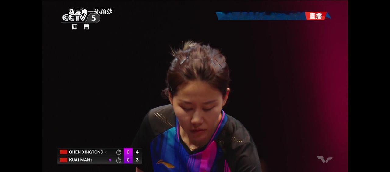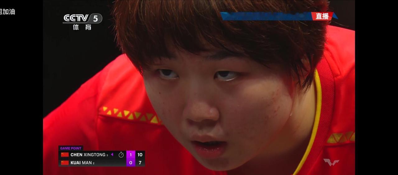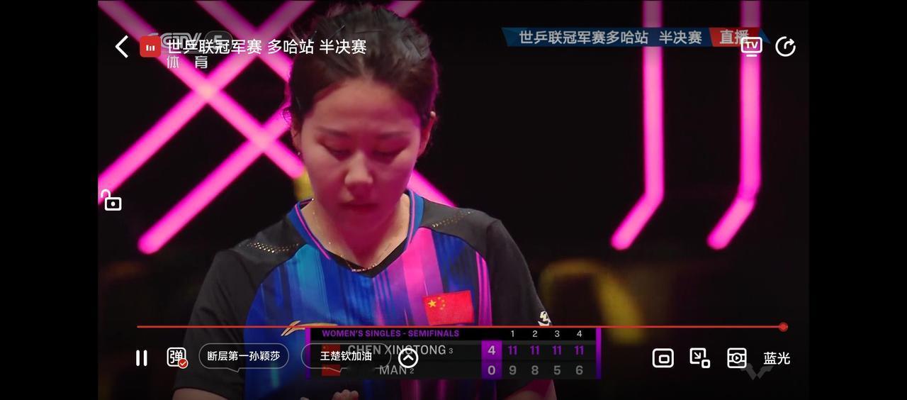 今天女单半决赛,感觉朱雨玲4:2赢韩莹正常[害羞]因为四十二岁滴老将能打败王曼昱,已经耗尽体力和精力[哈欠]但是大丫头蒯曼0:4输给陈幸同,总感觉有点不正常[机智]年轻小将,咋也拼一局呢[困]是不是大丫头不让同她同姐忒累,好为国乒拿个冠军[大笑]