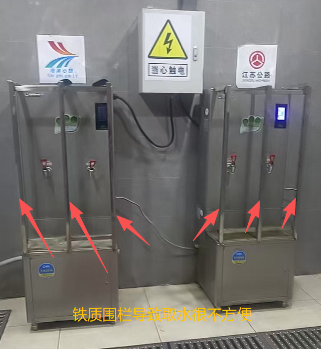近日,我在出差途径江苏省盐城G228射阳临海服务区做修整的时候,到热水区准备取水,但是当准备取水的时候才发现被钢条焊住了,正当我纳闷的时候,后方有货车司机主动就向我说明了情况,吐槽在这里遭遇 “喝水难” 的尴尬。该服务区新建的公共用水设施外观现代整洁,实际使用体验却大打折扣,被司机们质疑 “重形式、轻实用”,沦为中看不中用的 “摆设”。