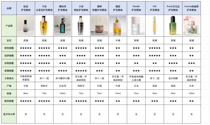 下面是我测评过的部分护发精油款式: