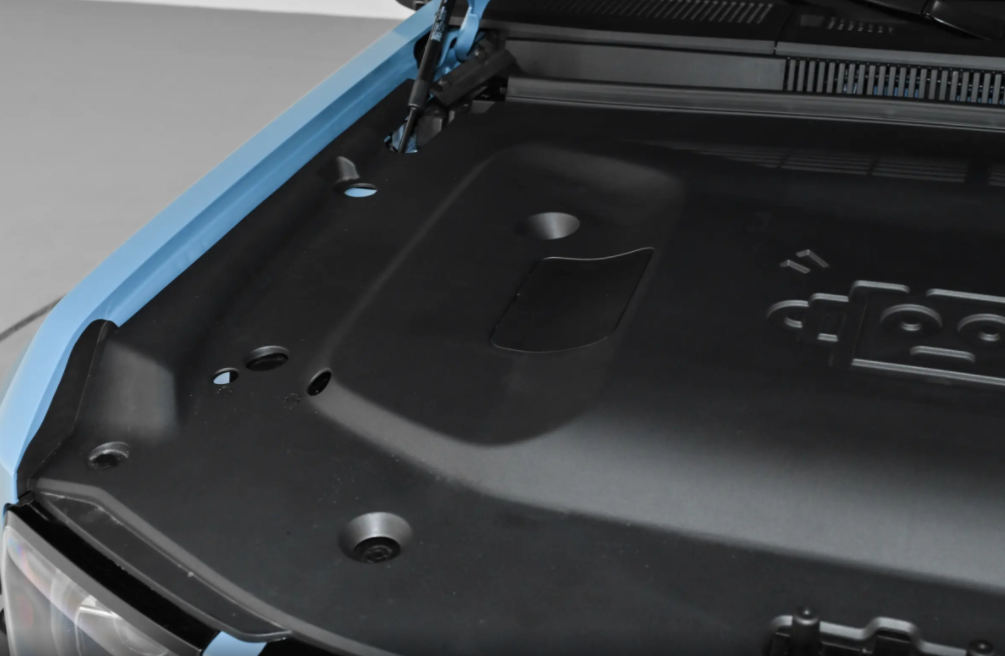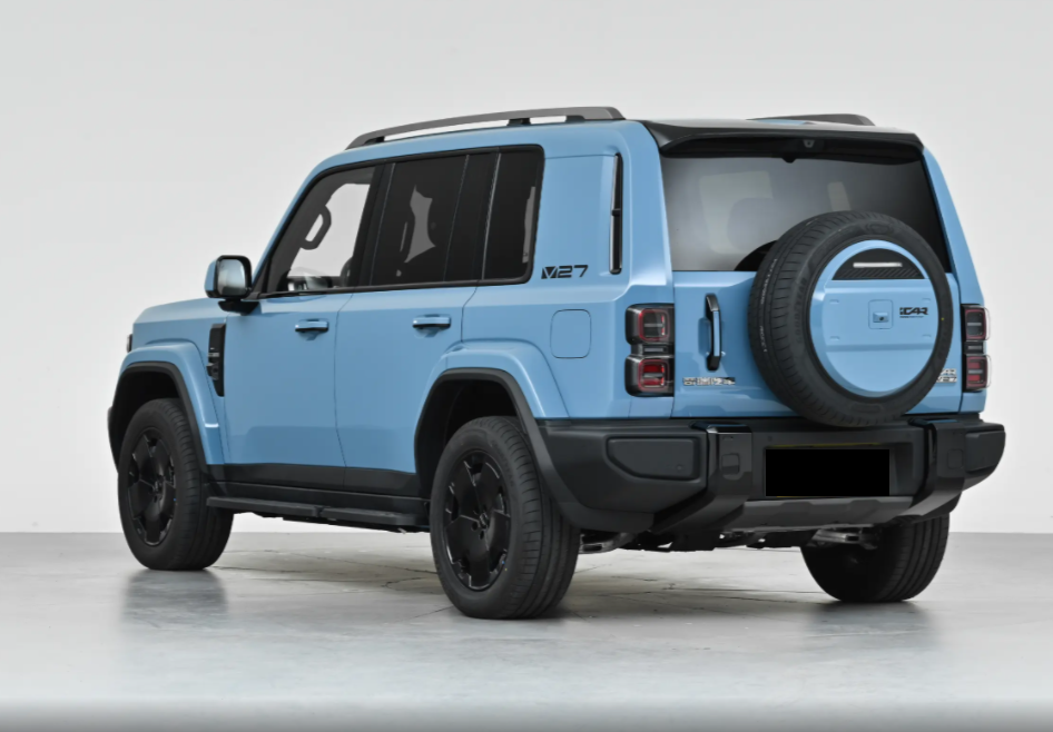 侧身设计上,iCAR V27的腰线处理也是以硬朗、笔直为主,配合黑色的立柱设计,让车辆呈现出悬浮式车顶的视觉效果,进一步提升了车辆的精致程度,并且该车独创的“Scoop切面”工艺,又让车辆的硬派质感得到了进一步的提升,侧窗后方清晰的“V27”标识,低调中彰显车型身份,轻量化铝合金分段式侧踏则兼顾了实用性与装饰性。车尾的外挂式备胎罩是硬派SUV的标志性设计,车身同色造型搭配中央的“iCAR”字样,辨识度拉满,竖直排列的红黑尾灯与车头设计遥相呼应,后保险杠以黑色为主,兼具防护性与简洁感,整体设计没有多余装饰,每一处细节都服务于硬派定位与实用需求。