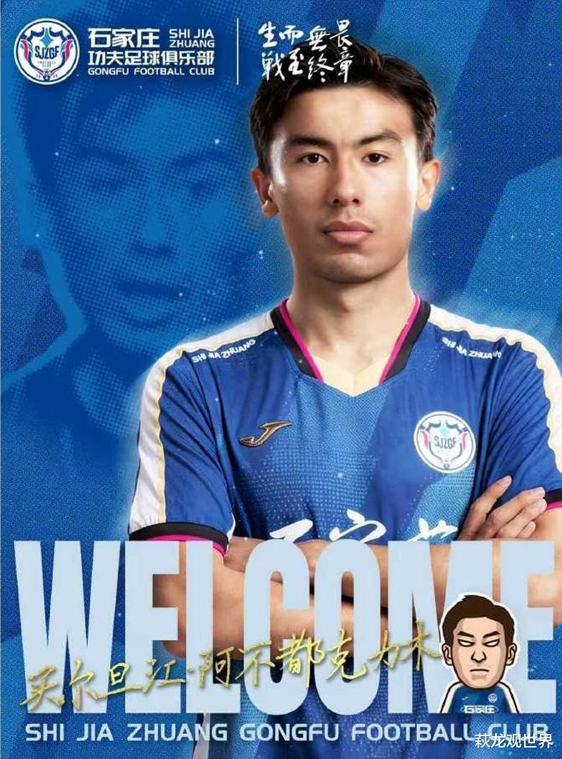 2月7日,石家庄功夫官宣,原武汉三镇B队中后场多面手买尔旦江正式加盟!买尔旦江1999年2月7日出生于新疆,身高约1米84,可打职中场、左后卫。职业生涯起步于河北华夏幸福预备队,随后效力于武汉三镇、青岛西海岸,为西海岸出战超过100场。上赛季随三镇B队征战中乙,出战26场打入1球+2次助攻。
