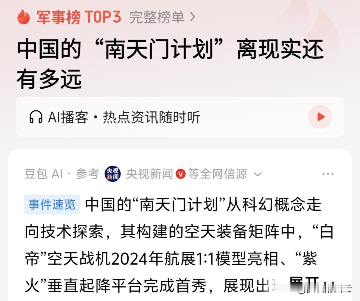 不是科幻片!中国“南天门计划”离我们还有多远?真相来了! 当你看到航展上那架银白色的“白帝”战机模型,或者听说十万吨级的“鸾鸟”空天母舰时,是不是觉得这只是电影里的桥段?其实,这个被称为“南天门计划”的中国科幻IP,正一步步把想象变成现实的蓝图! 别急着说“天方夜谭”,专家说了,这里面的很多技术不是能不能实现的问题,而是时间问题。 为什么这么说?因为咱们手里的“底牌”够硬! 1. 核心动力有戏: “鸾鸟”需要核聚变供能?咱们的“东方超环”已经实现了千秒量级的长脉冲运行,紧凑型核聚变实验装置也在紧锣密鼓推进,这可是给“南天门”插上了能源的翅膀。 2. 飞行技术在握: “白帝”战机要飞16马赫?咱们的斜爆震发动机技术已经完成了验证,高超音速武器更是早已列装,天空和太空自由穿梭,不再是梦。 3. 智能协同落地: “无人僚机”集群作战?现在的无人机蜂群技术和AI指挥系统,已经走在了世界前列。 当然,我们要清醒地看到,像空天母舰这样的“巨无霸”,要从图纸飞向太空,可能还需要30年甚至50年的持续攻关。 但正如专家所言,这个计划最大的意义,是为我们指明了未来空天技术的攻关方向。它既是战略威慑,更是中国航空航天人敢于仰望星空的底气! 从“跟跑”到“领跑”,甚至开始“定义未来”,这就是中国速度!你看好这个计划吗?评论区聊聊! 南天门计划 中国航天 硬核科技 白帝战机 鸾鸟空天母舰