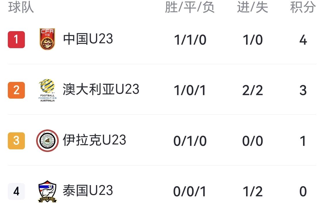 中国男足战胜澳大利亚队,暂居小组头名,有望首次晋级U23亚洲杯淘汰赛! 北京时间1月11日晚上7:30,中国男足迎来U23亚洲杯小组赛第二个对手—澳大利亚队,结果凭借王钰栋的定位球助攻,彭啸打进全场唯一进球,以1:0战胜对手,从而以两战1胜1平积4分暂居小组第一。 三天后,中国队将对阵小组赛最后一个对手,也是最弱对手—泰国队,只要打平就铁定出线。值得一提的是,中国队之前从未在U23亚洲杯小组赛出线过。如果这次晋级淘汰赛,那将创造了历史,从目前的状态来看,安东尼奥带领的这支国足很有希望实现历史突破! u23亚洲杯