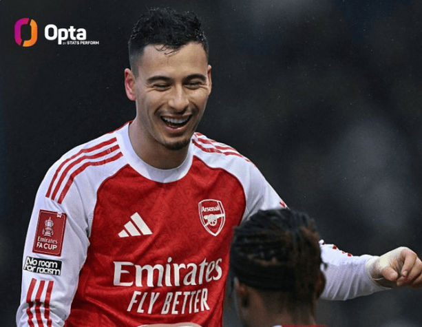 OPTA统计,马丁内利在代表阿森纳的第249场比赛中,完成了个人枪手生涯的首个帽子戏法。这也是自2017年1月沃尔科特(对阵南安普顿)戴帽以来,阿森纳在足总杯中的首个帽子戏法。