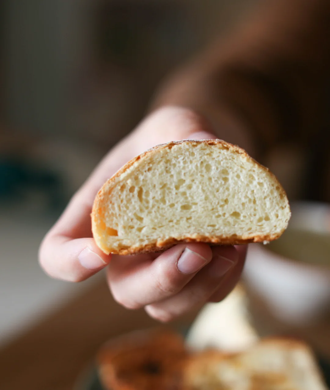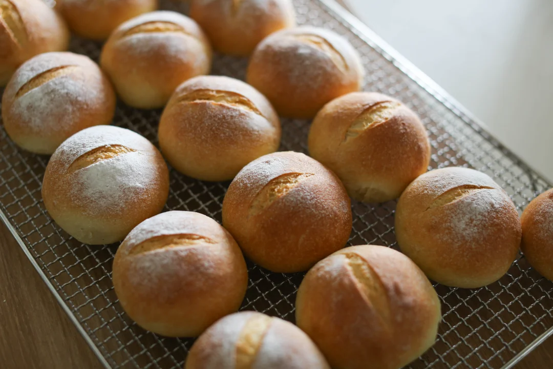 3:米面包做起来非常快,也非常节约时间。表面上撒一层米粉,在你喜欢的部位割上一刀,烤箱提前预热。上温190.下温170,烤大约10-12分钟,不要超过15分钟,如果烤箱有蒸气,喷5秒蒸气,上色更好,口感也更松软。