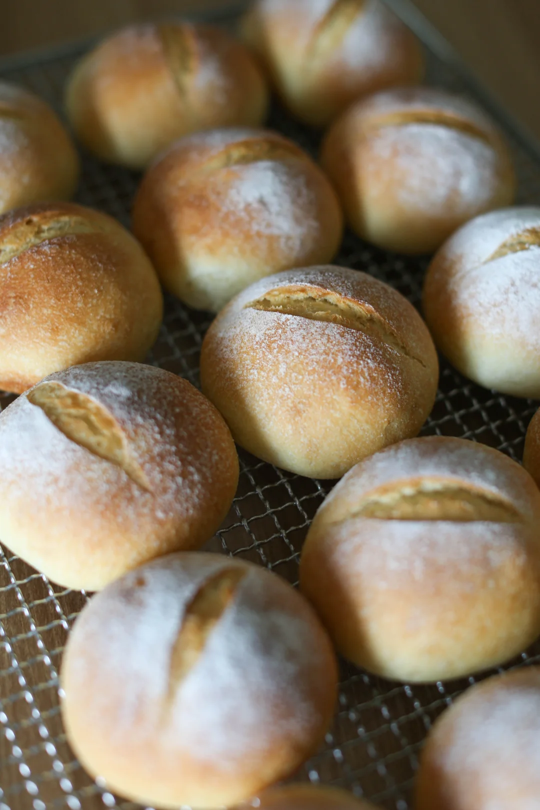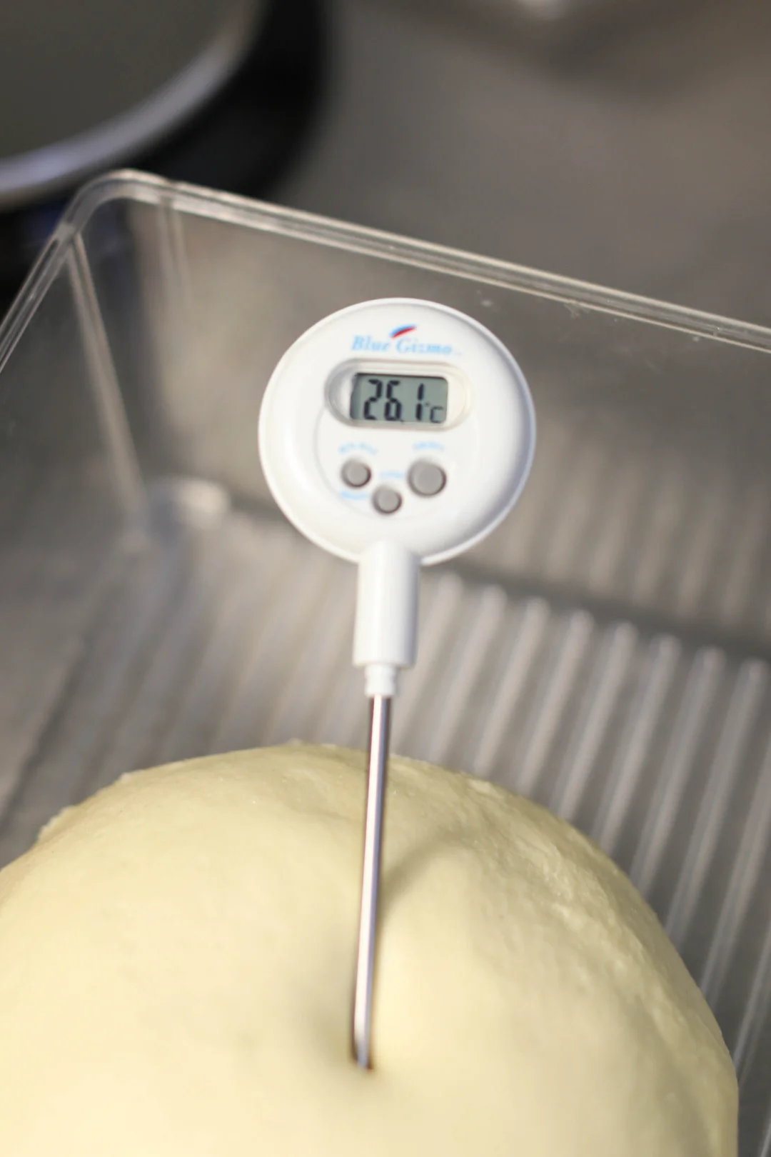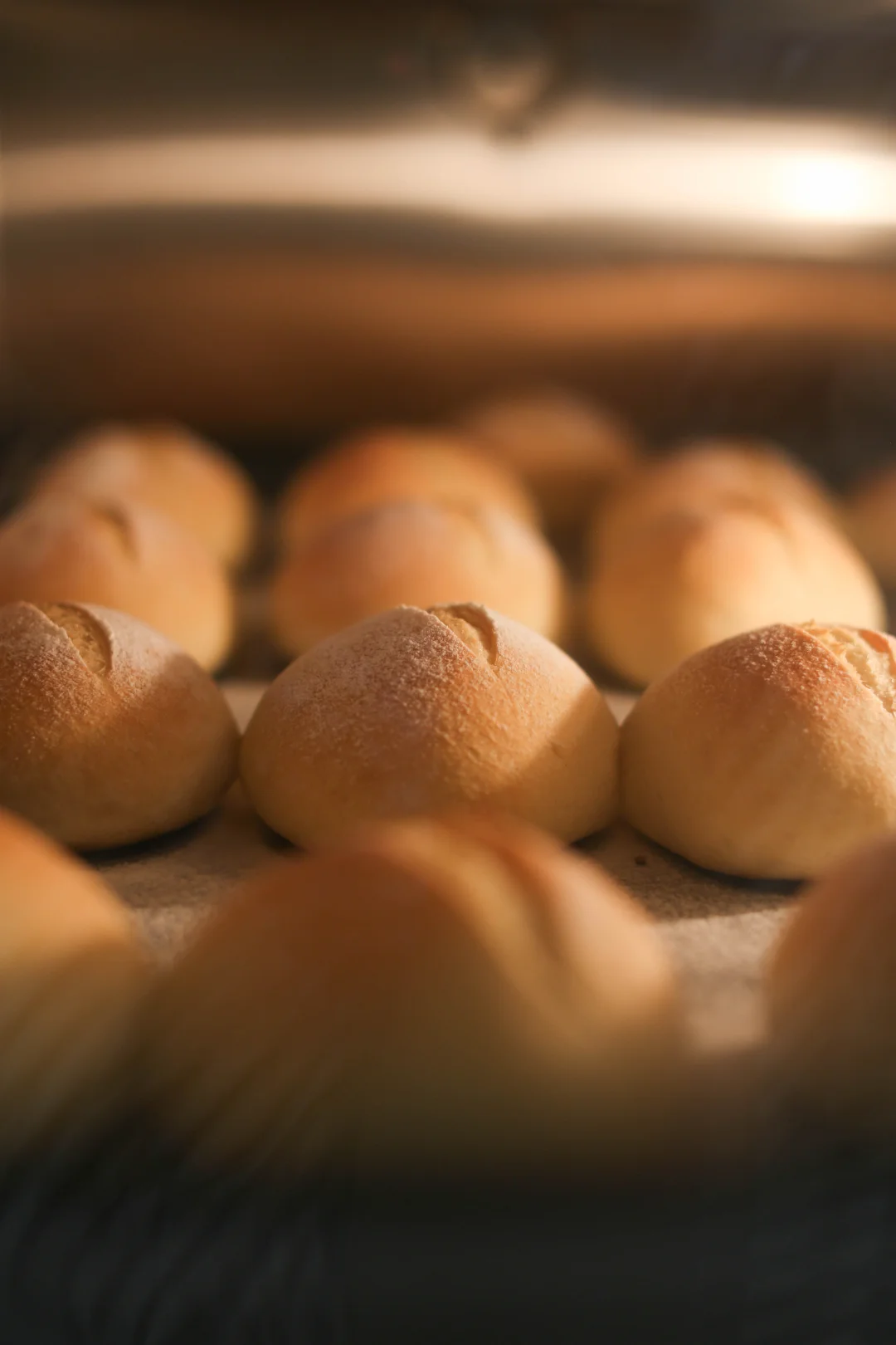 2:搅拌好的面团30度发酵30分钟,因为这个米的面筋支撑性不够,所以在一发的时候不能太久。平均分成60克一个的面团,揉成光滑的圆形直接二发。35度大约40-60分钟左右,发酵到两倍大小。