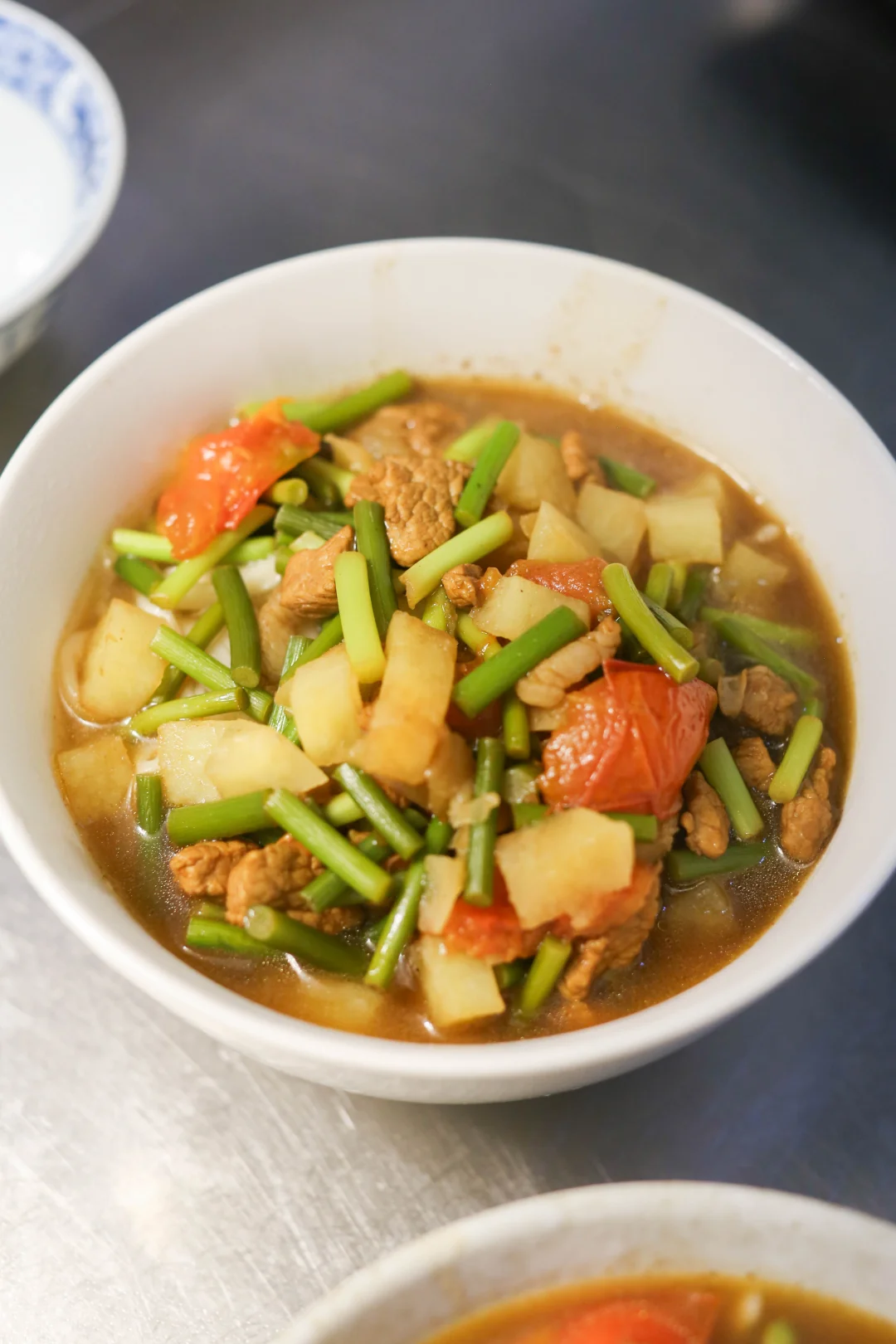 这样的一碗捞面条,在河南任何一个地方,中午的餐桌上估计都是必备。唯一有区别的可能就是里面的蔬菜差异,我喜欢吃有西红柿口味的,可以搭配各种夏天的时令蔬菜,肉丁可以换成鸡蛋。 现压的面条,煮好拌上臊子,一碗不到10分钟就秃噜完毕,没有太华丽的做法,但是味道是很扎实,有妈妈味道的一碗面。 如果让我一年四季中午都吃这样一碗面,我都不会烦。面如果是手擀的就更好吃了~