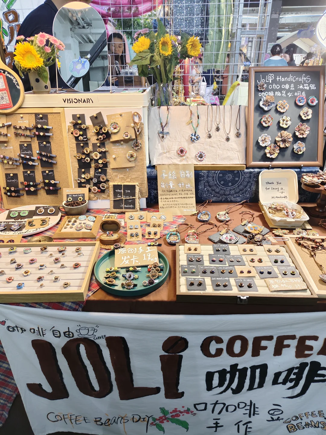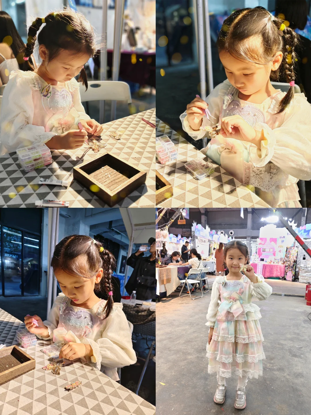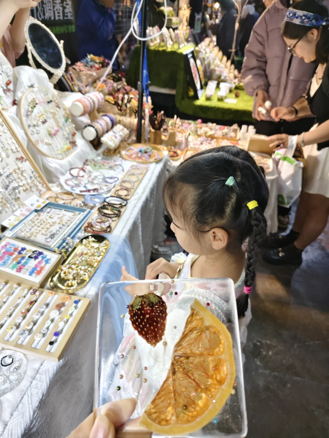 🎈非遗手作、文创、插画、饰品、美食等,让人耳目一新。印象深刻的是有一个叫🐨的小朋友,现场坠小主理人,有自己的独立品牌,每个作品都好吸引人,尊的敲赞。