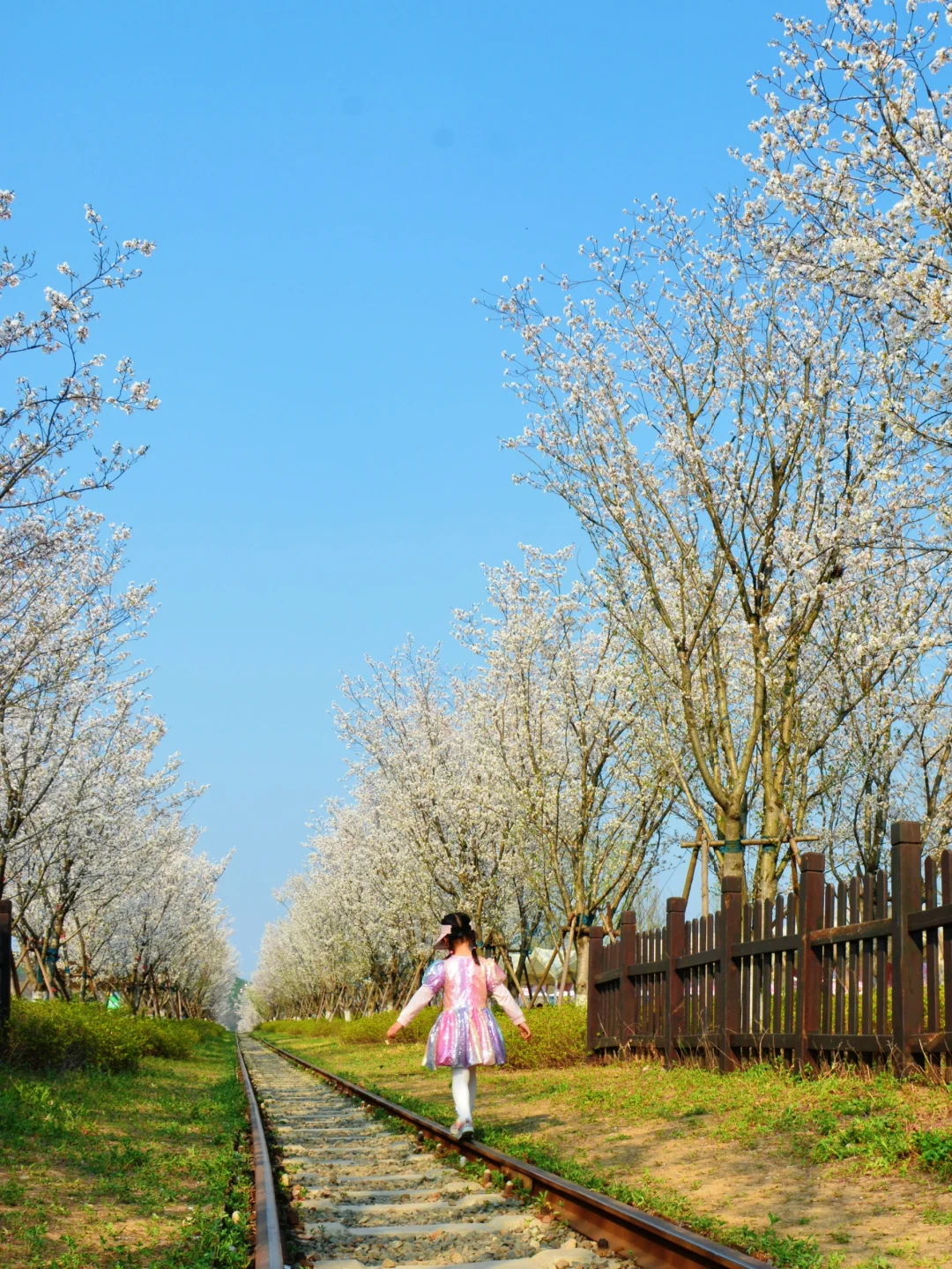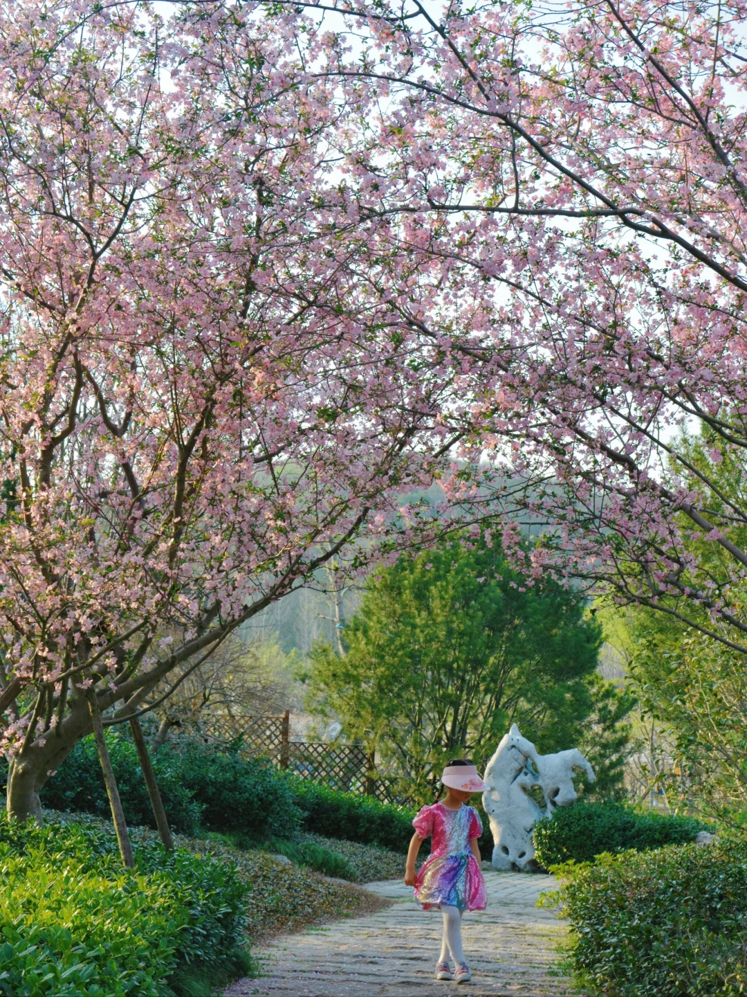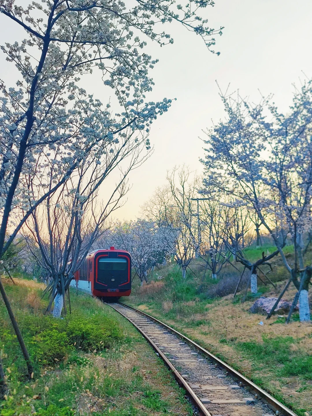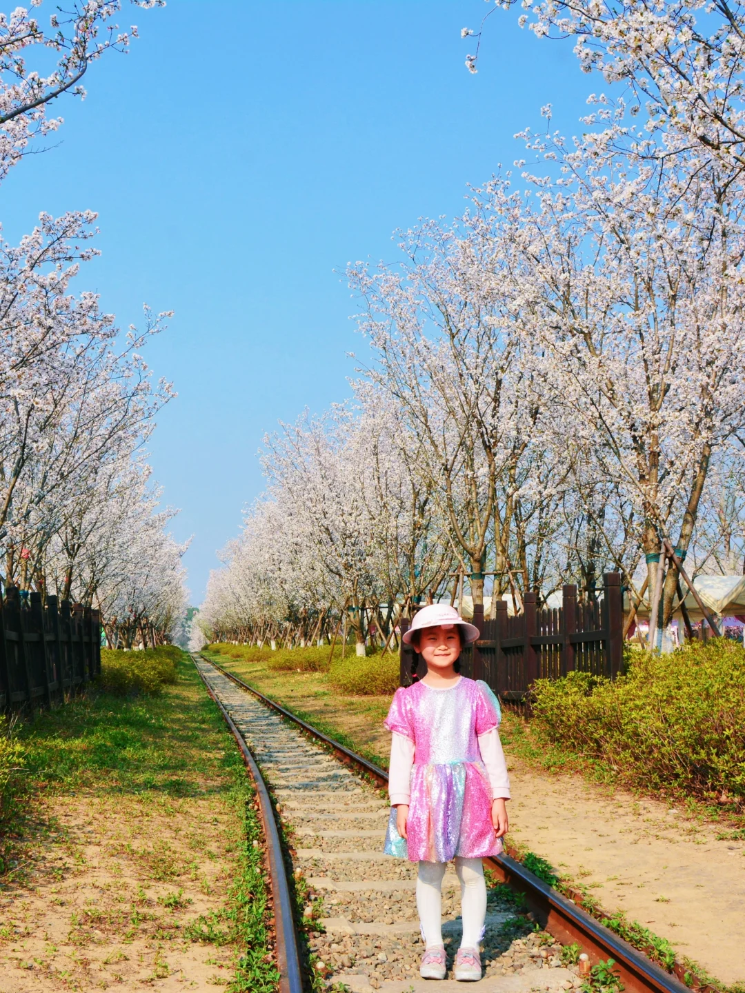 🎈乘坐小火车(30r/人)穿越樱花大道,最惊艳是转角遇见的樱花隧道,枝桠交织成粉色穹顶,风过时落英缤纷,仿佛穿越了时空之门,走进了童话世界。