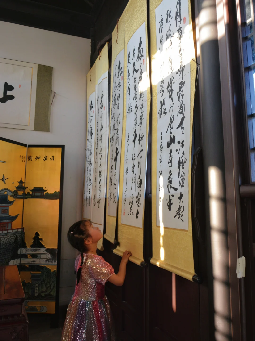 ✅常州园:小巧庭院内设书法互动区,小朋友可尝试拓印。