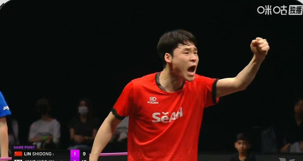 王皓指导坐在场边给林诗栋🇨🇳指导, 王皓指导表情平静,情绪稳定,时不时给林诗栋用力鼓掌喊加油,但是他鼻子下面的胡子长起来了,竟然没有刮。 估计是因为这几天的比赛太艰难了吧,无暇顾及了。 场上的林诗栋和张禹珍前两局打成了1-1平,目前第三局林诗栋9-11又被张禹珍拿下了! 大比分石头1-2落后!石头加油![奋斗]