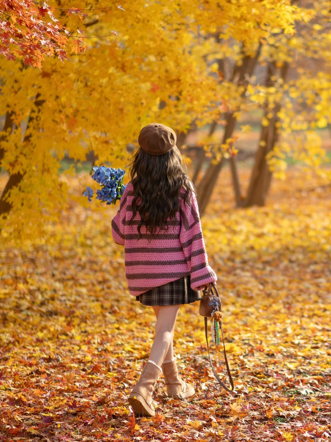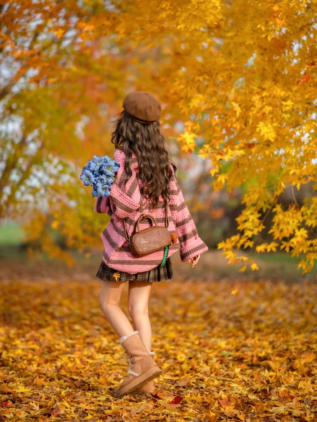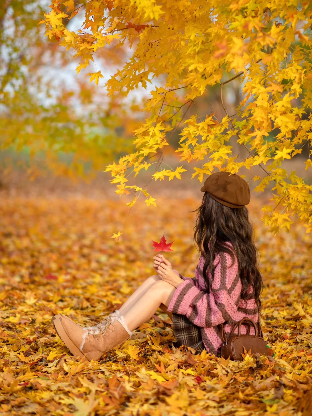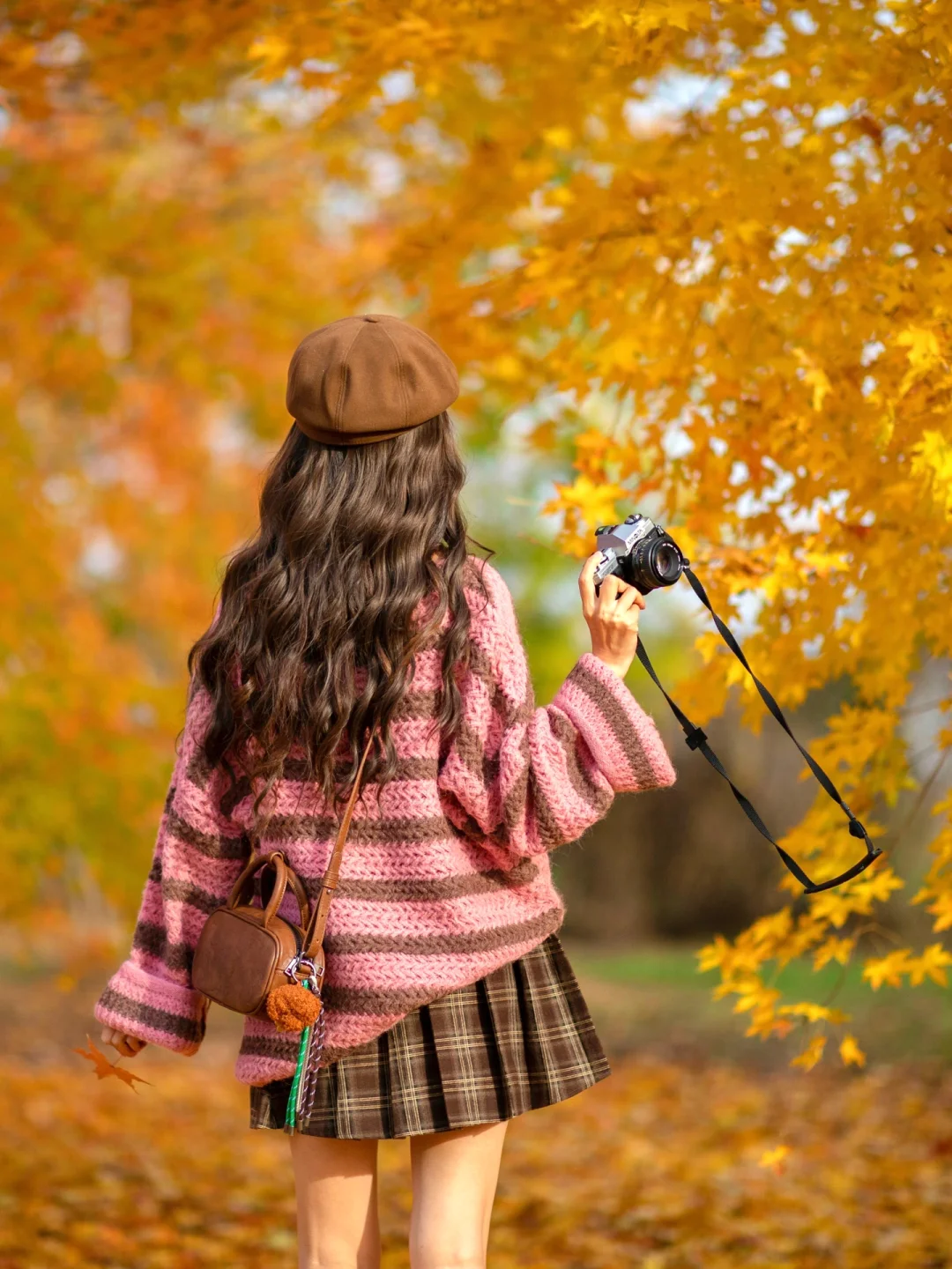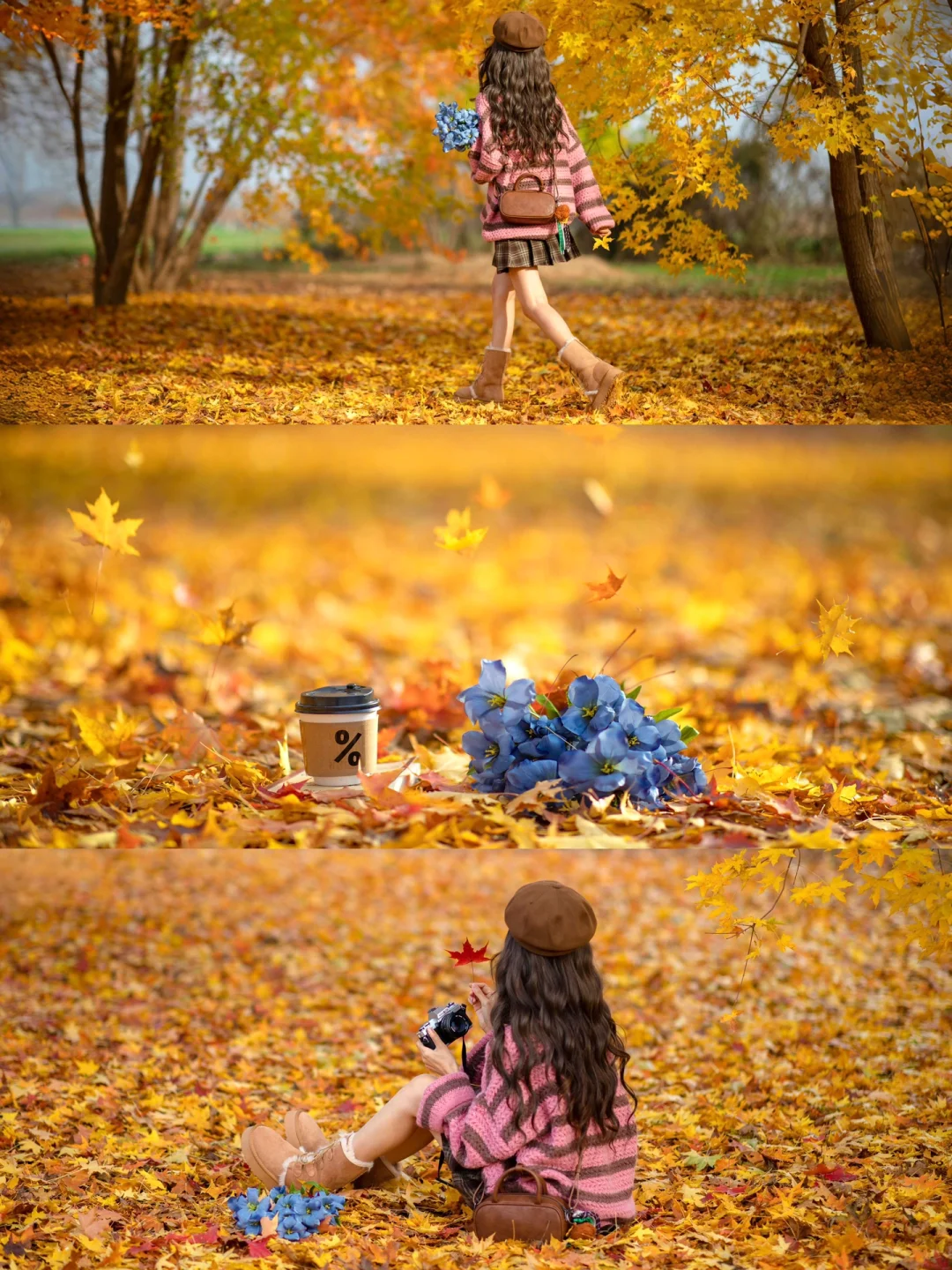 秋天公园落叶电影感拍照|附滤镜调色教程
