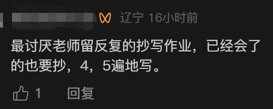 也有家长直接吐槽:“最讨厌老师留反复的抄写作业,已经会了的也要抄。”