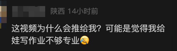 “这个视频为什么会推给我?可能是觉得我给娃写作业写得不够专业。”