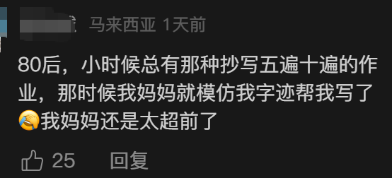 虽然在普通读者眼里,代娃写作业,还要想尽办法营造真实感这件事有点难以想象,但评论区有几千条家长留言,直呼太真实。