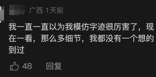 有网友说:“我一直以为我模仿字迹很厉害了,现在一看,这么多细节,我一个都没有想到过。”