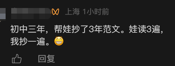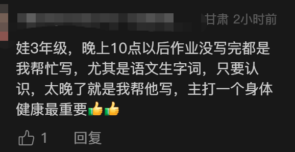 还有网友说:“重点初中的语文老师她就经常代娃写语文作业,我想她一定有自己的道理。”
