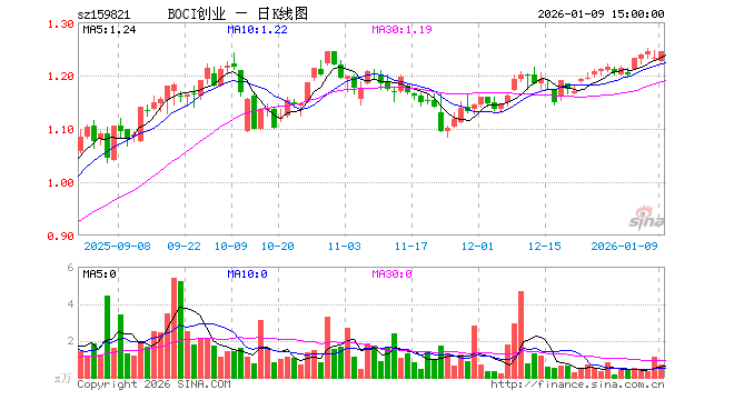 1月9日,创业板ETF中银证券(159821)涨0.97%,成交额83.66万元。当日份额增加130.00万份,最新份额为1392.00万份,近20个交易日份额减少130.00万份。最新资产净值计算值为1733.88万元。