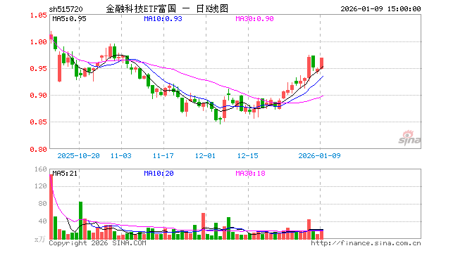 金融科技ETF富国(515720)业绩比较基准为中证金融科技主题指数收益率,管理人为富国基金管理有限公司,基金经理为殷钦怡,成立(2025-09-22)以来回报为-3.01%,近一个月回报为9.74%。