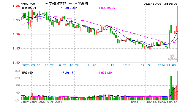1月9日,医疗器械ETF(562600)涨1.64%,成交额6956.70万元。当日份额增加3800.00万份,最新份额为5.28亿份,近20个交易日份额增加1.41亿份。最新资产净值计算值为4.89亿元。