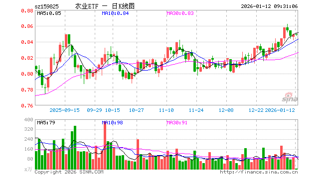 1月12日,农业ETF(159825)开盘涨0.00%,报0.849元。农业ETF(159825)重仓股方面,牧原股份开盘涨0.00%,温氏股份涨0.00%,海大集团跌0.19%,藏格矿业涨3.08%,盐湖股份涨4.22%,新希望涨0.00%,亚钾国际涨0.04%,梅花生物跌0.20%,扬农化工跌0.13%,大北农跌0.25%。