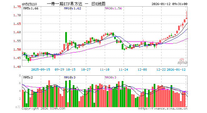 一带一路ETF易方达(515110)业绩比较基准为中证国企一带一路指数收益率,管理人为易方达基金管理有限公司,基金经理为刘树荣,成立(2019-11-06)以来回报为67.13%,近一个月回报为10.10%。