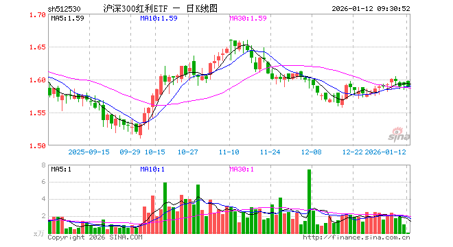 1月12日,沪深300红利ETF(512530)开盘涨0.38%,报1.597元。沪深300红利ETF(512530)重仓股方面,中远海控开盘跌0.54%,潞安环能跌0.46%,山西焦煤跌0.29%,陕西煤业涨0.00%,中国神华涨0.00%,农业银行跌0.40%,兖矿能源跌0.70%,建设银行跌0.55%,中国石化跌0.97%,南京银行跌0.65%。