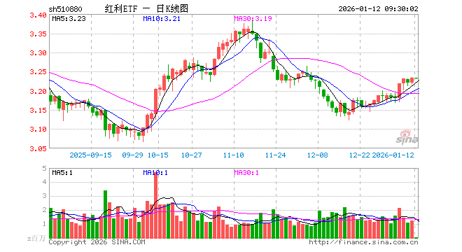 1月12日,红利ETF(510880)开盘跌0.03%,报3.233元。红利ETF(510880)重仓股方面,中远海控开盘跌0.54%,潞安环能跌0.46%,中谷物流跌0.59%,农业银行跌0.40%,南钢股份涨1.09%,海澜之家涨0.00%,中信银行跌0.41%,建设银行跌0.55%,南京银行跌0.65%,兴业银行跌0.14%。