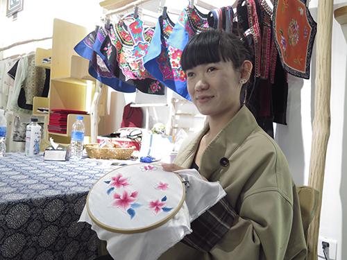 杨霞展示自己的刺绣作品。