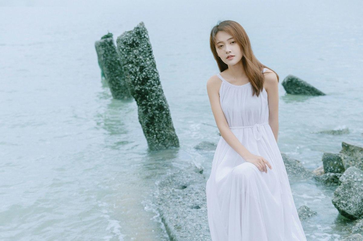 海边少女微风拂面静享时光海边 美少女 海边活力少女 海边度假少女