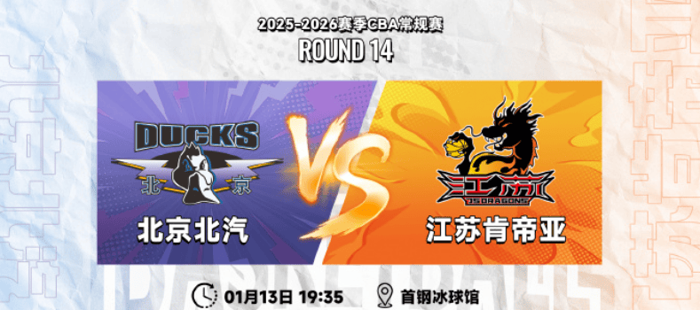 虎扑01月12日讯明日CBA常规赛:江苏男篮将对阵北京男篮。