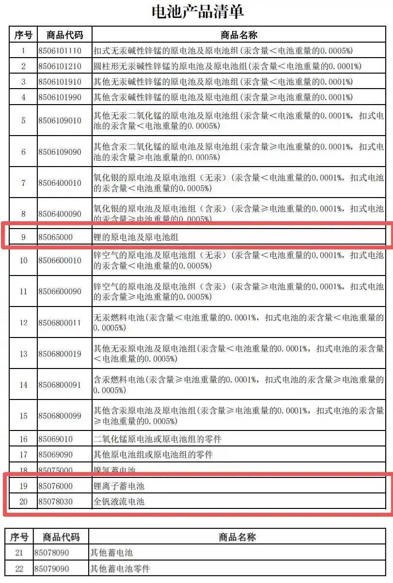 公告指出,电池产品出口退税率将分两阶段下调:自2026年4月1日起至2026年12月31日,电池产品的增值税出口退税率由9%下调至6%;2027年1月1日起,取消电池产品增值税出口退税。其中,电池产品清单中包括锂的原电池及原电池组、锂离子蓄电池、全钒液流电池等产品。对上述产品中征收消费税的产品,出口消费税政策不作调整,继续适用消费税退(免)税政策。