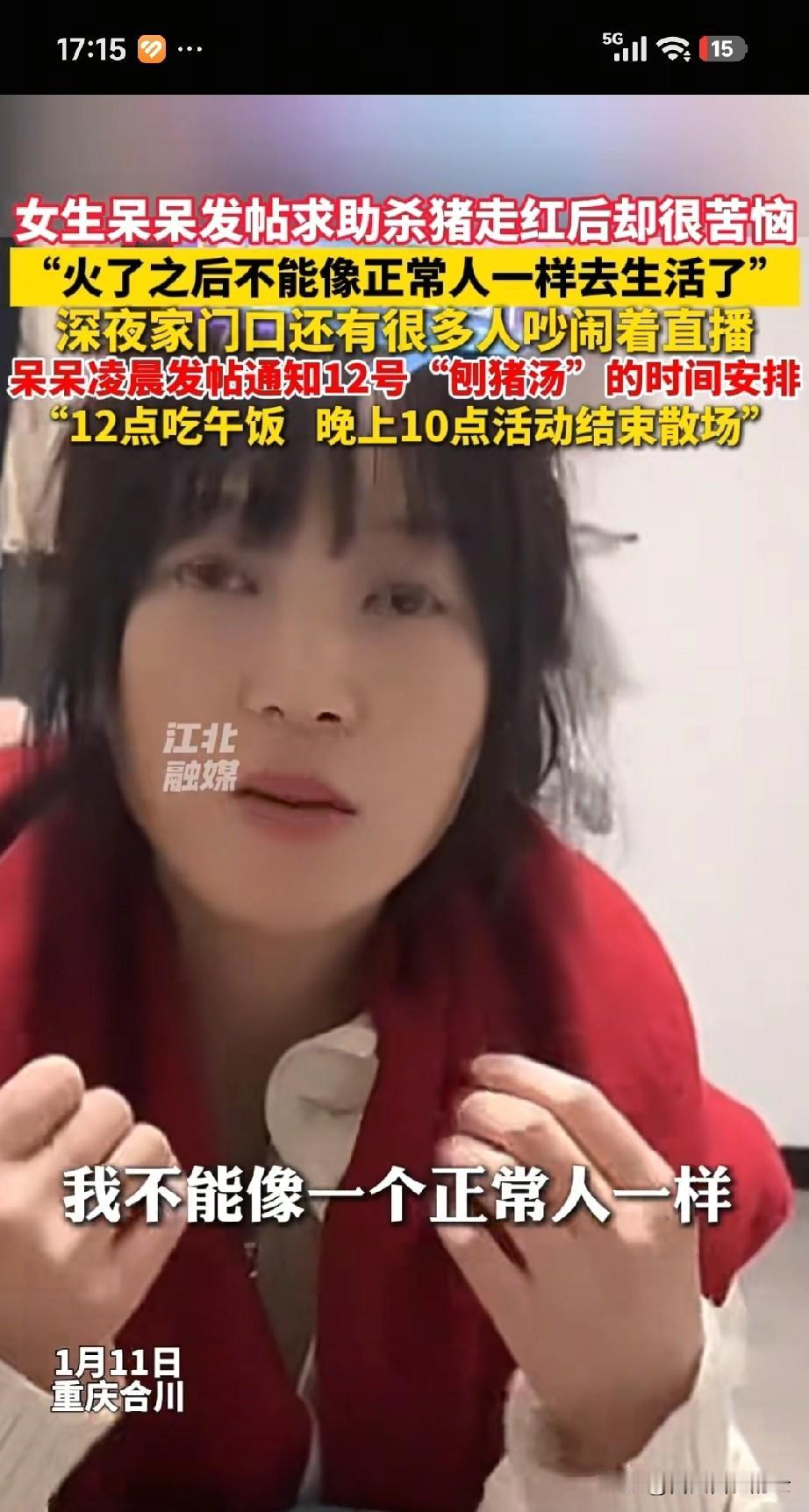 呆呆发视频说,自己有点受不了了,她已经不能像普通人一样生活了。我看视频里,有些人