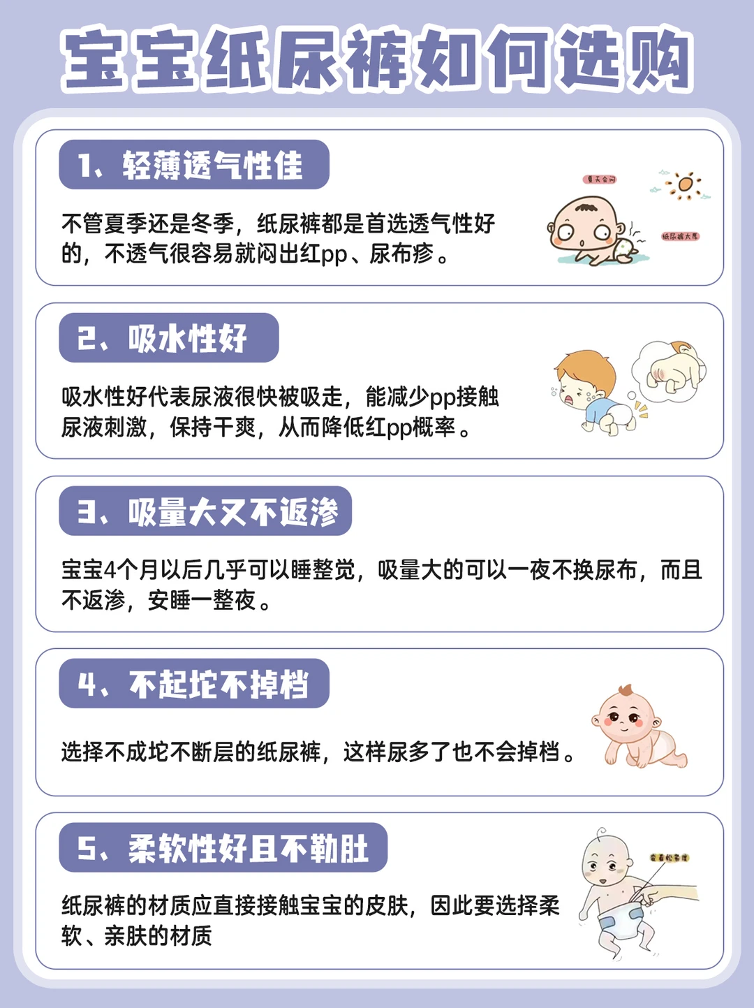 ❌ 别买太便宜的杂牌:材质差、吸水力弱,不仅容易漏尿,还可能含荧光剂,伤害宝宝皮肤;