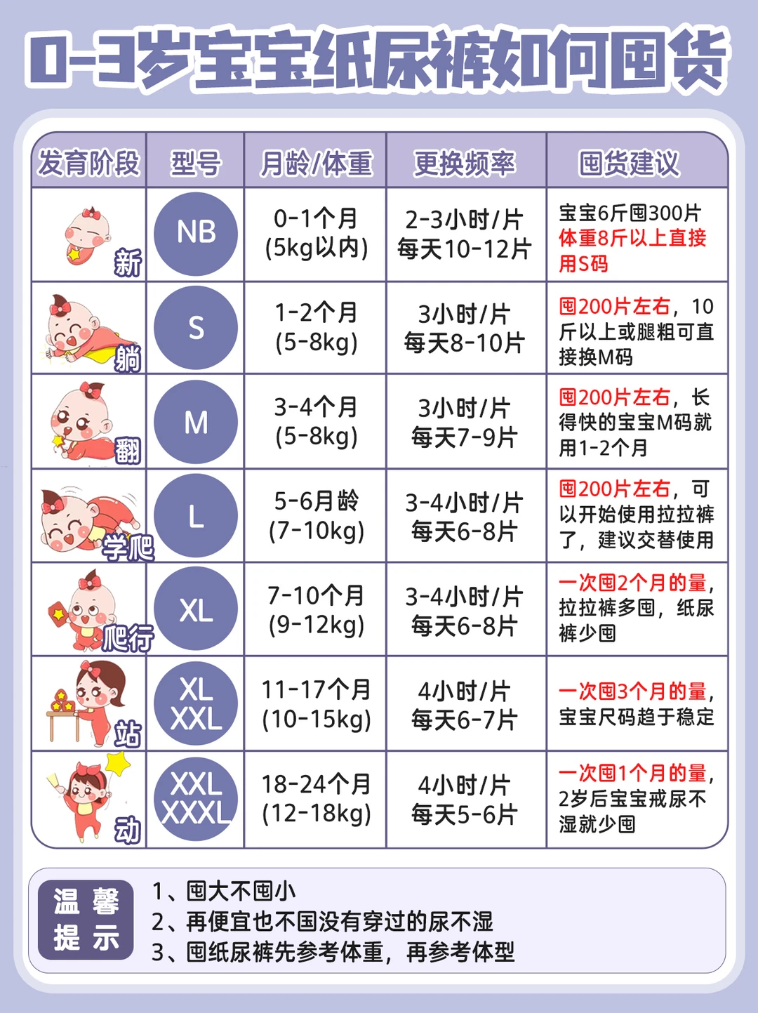✅ 及时更换:新生儿每2-3小时换一次,大宝宝白天4小时换一次,拉臭臭后立刻换,换之前用温水洗屁屁,擦干晾干再穿新的。