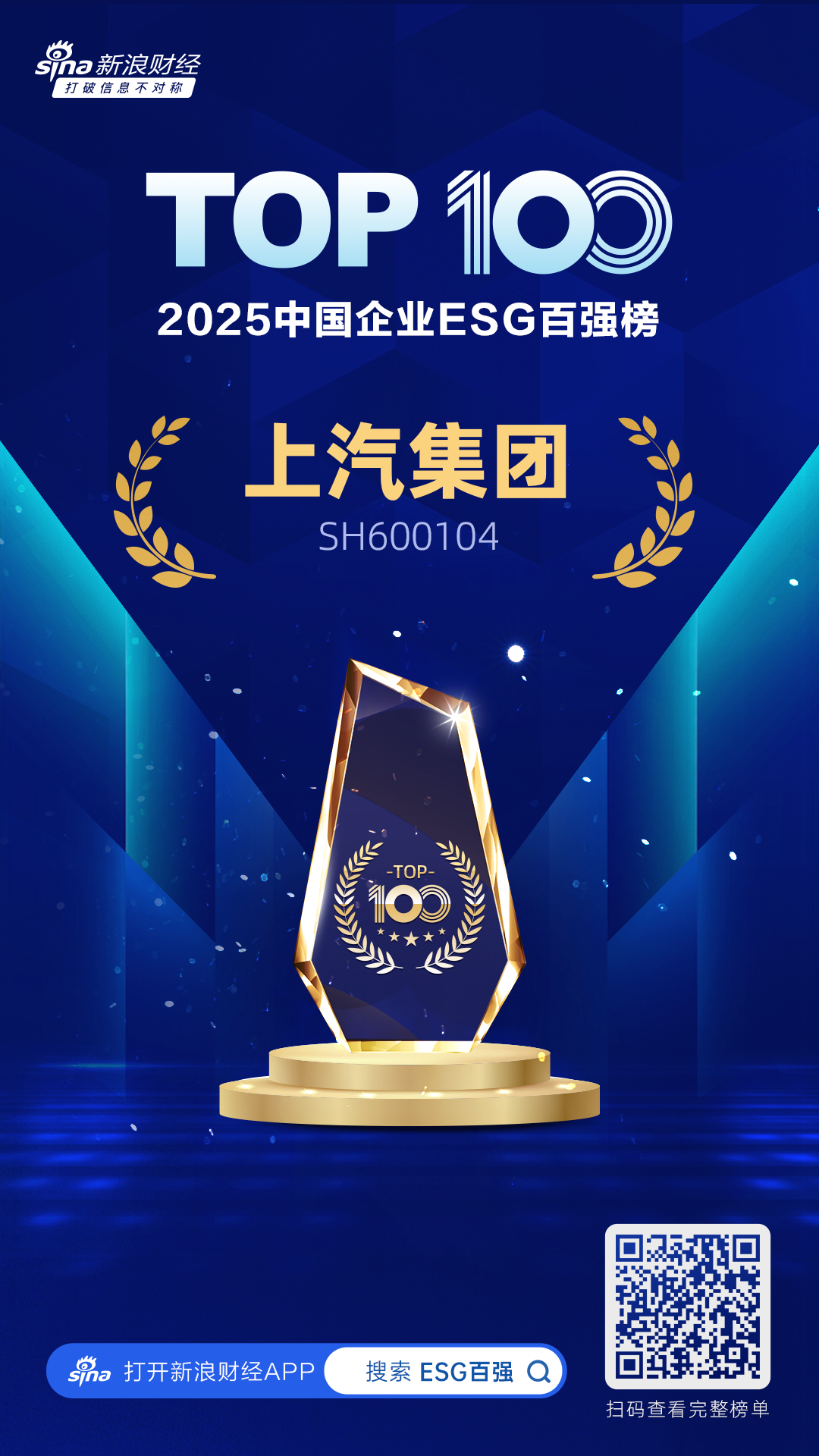 上汽集团在环境、社会、公司治理领域开展了大量工作,积累了丰富的创新实践与扎实的落地成果。凭借在ESG各领域的卓越表现,上汽集团成功入选本次新浪财经“2025中国企业ESG百强”榜单,并位列第33名。