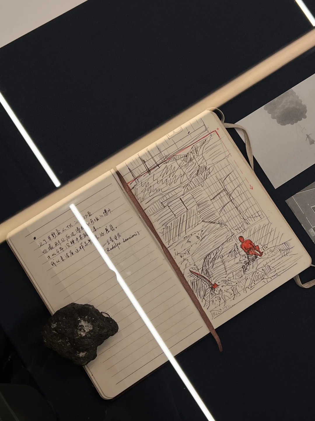 近期看过的一个很喜欢的展 一个由光组成的 不断被搭建、照亮、消散的「临时剧场」 无论是窗边的柠檬🍋 还是密密麻麻实验过程的手稿 还是编排成诗的影像 都是一场影像的观看法则的构建呈现… 尤其喜欢窗外的那句 Let there be light and there was light