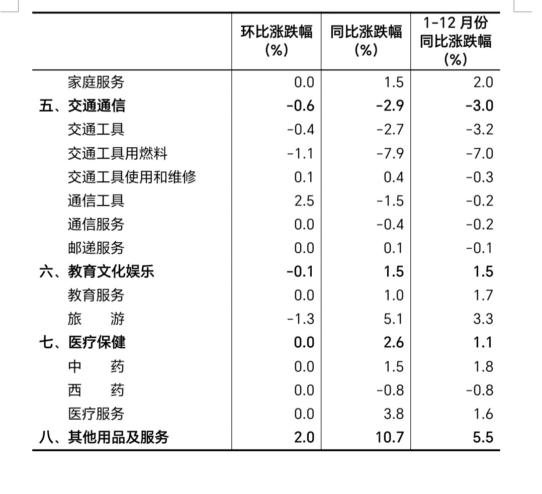 值得一提的是,随着提振消费政策效果持续显现,叠加元旦节前消费需求增加,2025年12月,通信工具、文娱耐用消费品、家用器具等价格不同程度上涨。如平板电脑、台式计算机价格环比分别上涨3.5%、3.3%;热水器、洗衣机价格环比分别上涨4.2%、2.9%。