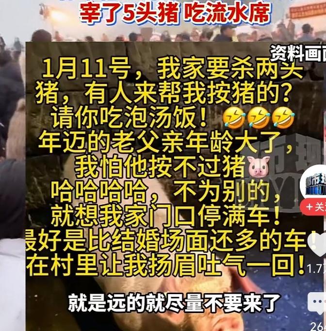 发布“按猪”视频的呆呆 为什么瞬间火爆全网? 元月初的某天,家住四川的女孩(网名)呆呆,发布了一条视频请求网友,在他家元月11日杀年猪的当天来帮助“按猪”。 谁也没有想到就是短短的这样一条视频,吸引来3000多位来自远近不同地方的朋友,提前一天就用人和车辆把呆呆家的门前、街边空地堵得个满满当当。 按猪的人是有了,可请大家吃泡汤饭的猪却不够了。 由此,当地文旅部门赶来了两头猪救急因为热心网友也捐助了一头猪。 如此一来,这5头猪热乎乎的招待了3000位朋友。 那么我们的问题来了。为什么一条请求按猪的视频,就能让全网轰动,让这个呆呆小姑娘觉得自己是惹了祸呢? 我想有这样几条原因吧: 第一、参与的网友多数为80后。这些人在童年的记忆中都有杀年猪的美好回忆。而生活的打拼、工作的压力,让他们几乎忘掉了这份温暖的回忆。一旦被呆呆这样一激发一点醒,让这份小火苗瞬间燃烧起来。 第二、城镇化的发展进程中,把千百年来留下的杀年猪聚邻里等美好传统几乎丢掉时,人们乍一回头。重新看到了当年的温暖。这份压抑自然被激活。 第三、一段时间以来,人们追求的情绪价值,必然会在某一个点上得到。而呆呆就是get到了这个点。 对了,仅仅一天时间呆呆的粉丝暴涨20万。 朋友您对呆呆视频的爆火还有哪些看法呢?欢迎留言讨论。