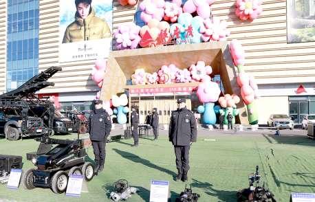 在警用装备展示区,特警队员现场演示了无人机、机器狗、搜排爆装备等新型警务设备。
