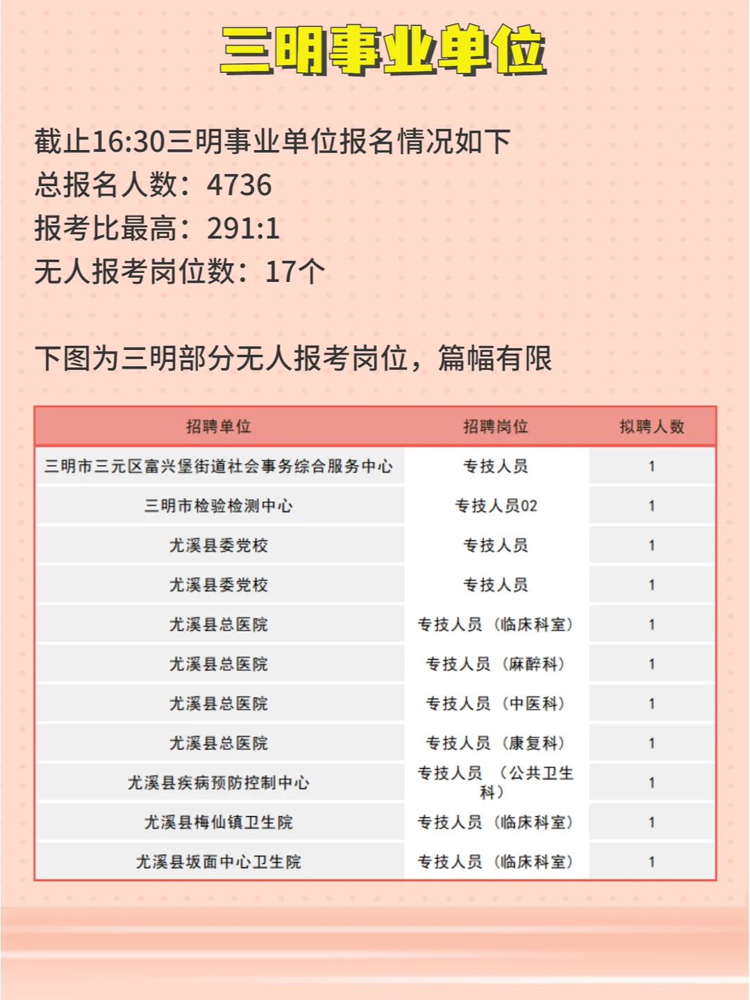 福建事业单位903联考哪些岗位无人报名?
