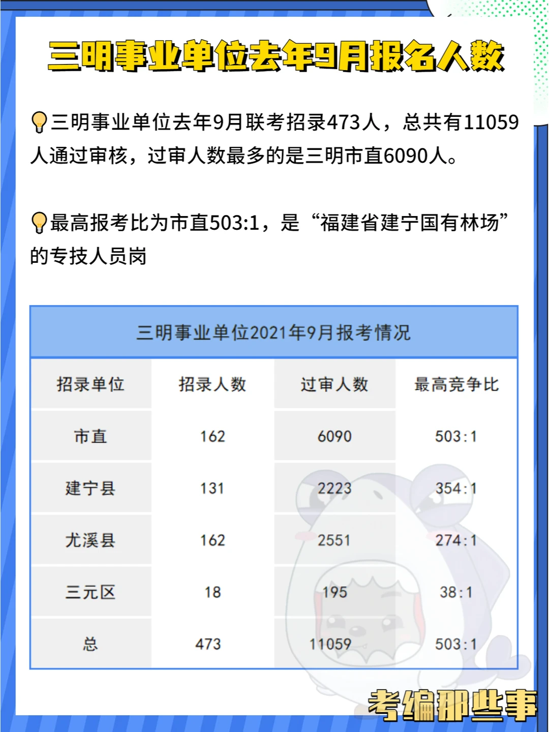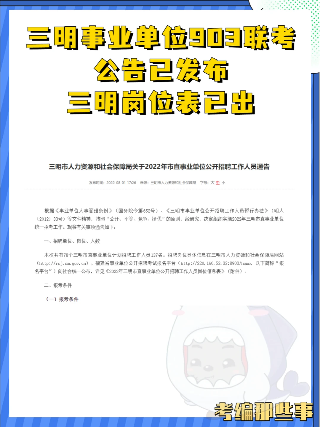 三明市直事业单位招137人 招录人数:137人 报名时间:8月3日-9日 考核方式:笔试+面试