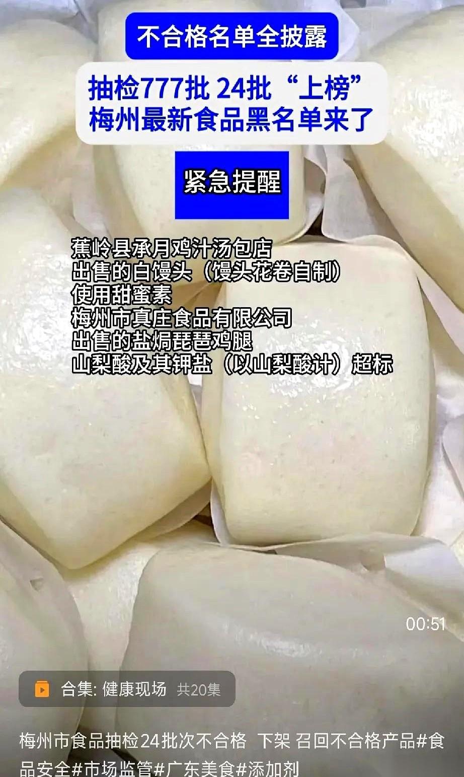 我滴个乖乖,后背一阵发凉。 鲈鱼,九节虾,白馒头,白切鸡…… 哪个不是咱们餐桌上天天见的东西?就这些,居然被查出来不合格。 最要命的是,我上周差点就买了那家店的九节虾,就差那么一点点! 真的,以前看这种新闻,总觉得离自己很远。今天一看,好几家店就在我家附近,有的甚至是我妈常去的老地方。你说气不气人,防不胜防啊。 但这次,我真得说句心里话。 不怕查出问题,就怕查出问题了还藏着掖着,搞个什么“某某店”,让我们猜谜语。 这次梅州市场监管局牛就牛在,直接把店名、地址给你点得明明白白。 谁家的鸡,谁家的鱼,一清二楚。 这一下,感觉天都亮了。 这不叫什么“筛选”,这叫给了我们普通老百姓一双“火眼金睛”。 让我们知道,以后买菜,该绕着谁走。 这才是真真正正在为我们办事儿,心里一下就踏实了。