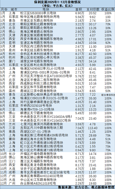 全年投资不乏高光时刻:4月,在杭州萧山世纪城地块的竞拍中,经过168轮厮杀,以45.37亿元、溢价率58.8%竞得,创下板块楼面价新高。6月,在上海杨浦区内环地块的争夺中,保利历经95轮竞价,以35亿元、溢价率30.79%拿下,楼面价高达9.55万元/平方米,刷新区域纪录。12月,在广州海珠区,经过76轮报价,以35亿元、溢价率27.27%摘得南泰路地块。