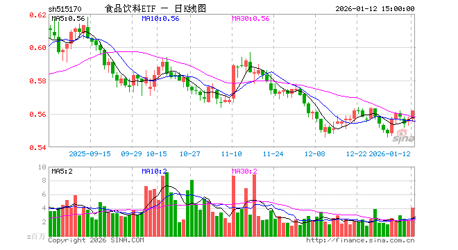 1月12日,食品饮料ETF(515170)涨0.90%,成交额2.26亿元。当日份额减少1.30亿份,最新份额为100.82亿份,近20个交易日份额减少11.21亿份。最新资产净值计算值为56.60亿元。